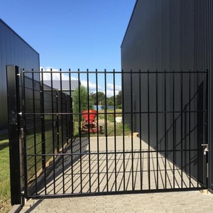 Na het uitzetten van de juiste afmetingen werd het frame gelast, geplaatst en stevig verankerd in de grond. De afwerking in een weerbestendige coating zorgde niet alleen voor duurzaamheid, maar gaf het hek een strakke, moderne uitstraling.